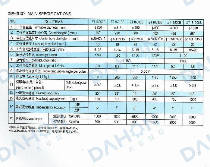• 產品名稱: 安徽ZT16(250-1000)系列立式數控回轉工作臺