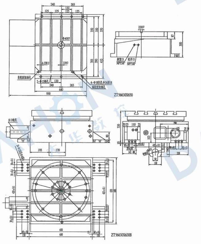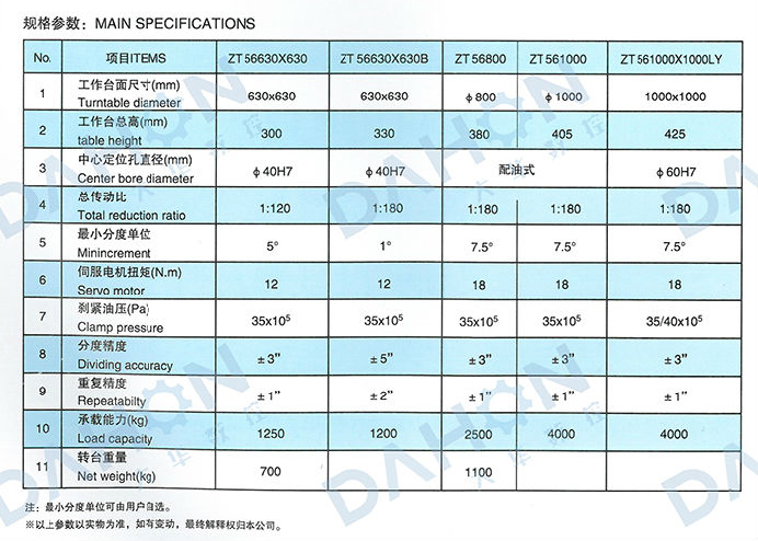 ZT 56系列數(shù)控等分轉(zhuǎn)臺(tái)用于數(shù)控銑、鏜床及加工中心加工等分零件的加工,它采用伺服電機(jī)驅(qū)動(dòng),三聯(lián)齒盤(pán)精確定位,具有精度高、載重大、精度保持性好等特點(diǎn)。(工作臺(tái)可根據(jù)用戶要求訂做圓形或知形)