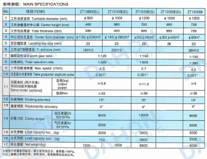 • 產品名稱: 湖北ZT13(800-1200)EEL&ZT131200A系列立臥兩用(大型)數控回轉工作臺