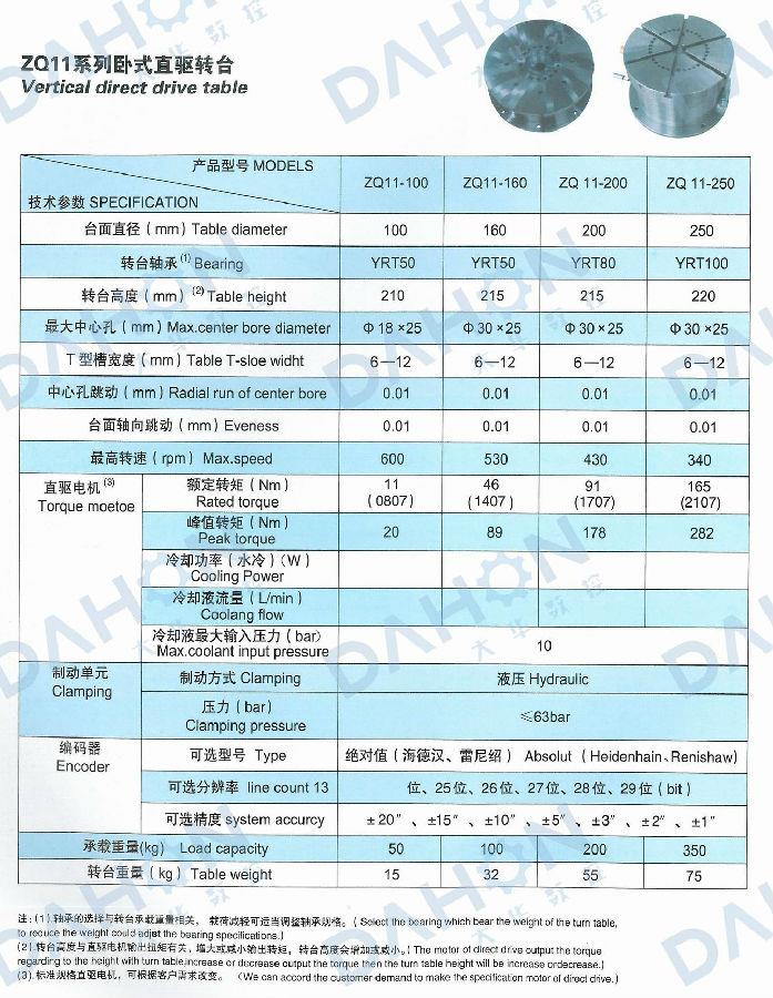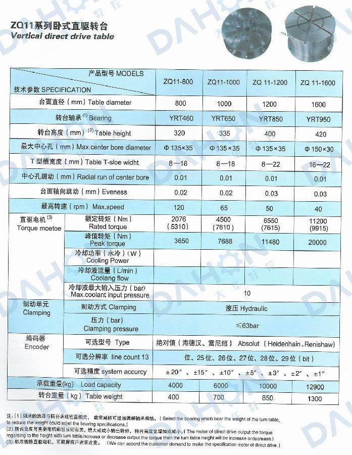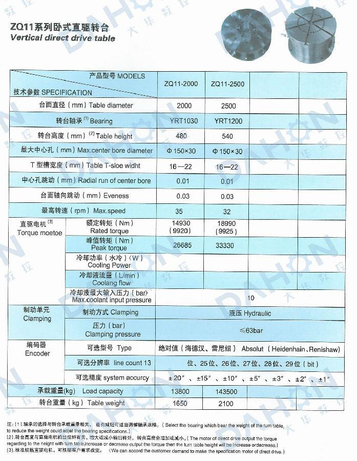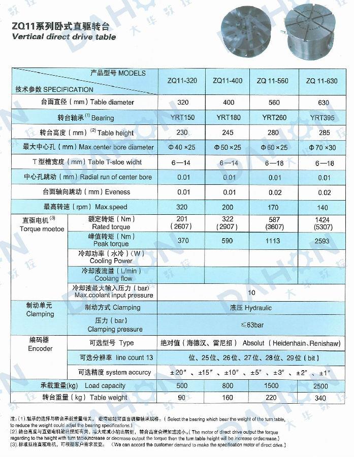 ZQ系列數(shù)控直驅(qū)回轉(zhuǎn)工作臺采用大扭矩力矩電機直接驅(qū)動,編碼器為反饋信號,可實現(xiàn)高精度的旋轉(zhuǎn)定位,是數(shù)控鏜銑床和加工中心的理想配套附件。工作時,在主機相關(guān)控制系統(tǒng)控制下,能夠完成與主機相協(xié)調(diào)的各種必需的分度回轉(zhuǎn)運動,實現(xiàn)等分、不等分的連續(xù)孔、槽、曲面的加工,且達到較高的精度。煙臺大華數(shù)控機床附件有限公司是數(shù)控機床附件設(shè)備的知名配套企業(yè),可生產(chǎn)多種型號臥式直驅(qū)轉(zhuǎn)臺產(chǎn)品,技術(shù)精湛,可定制研發(fā)。